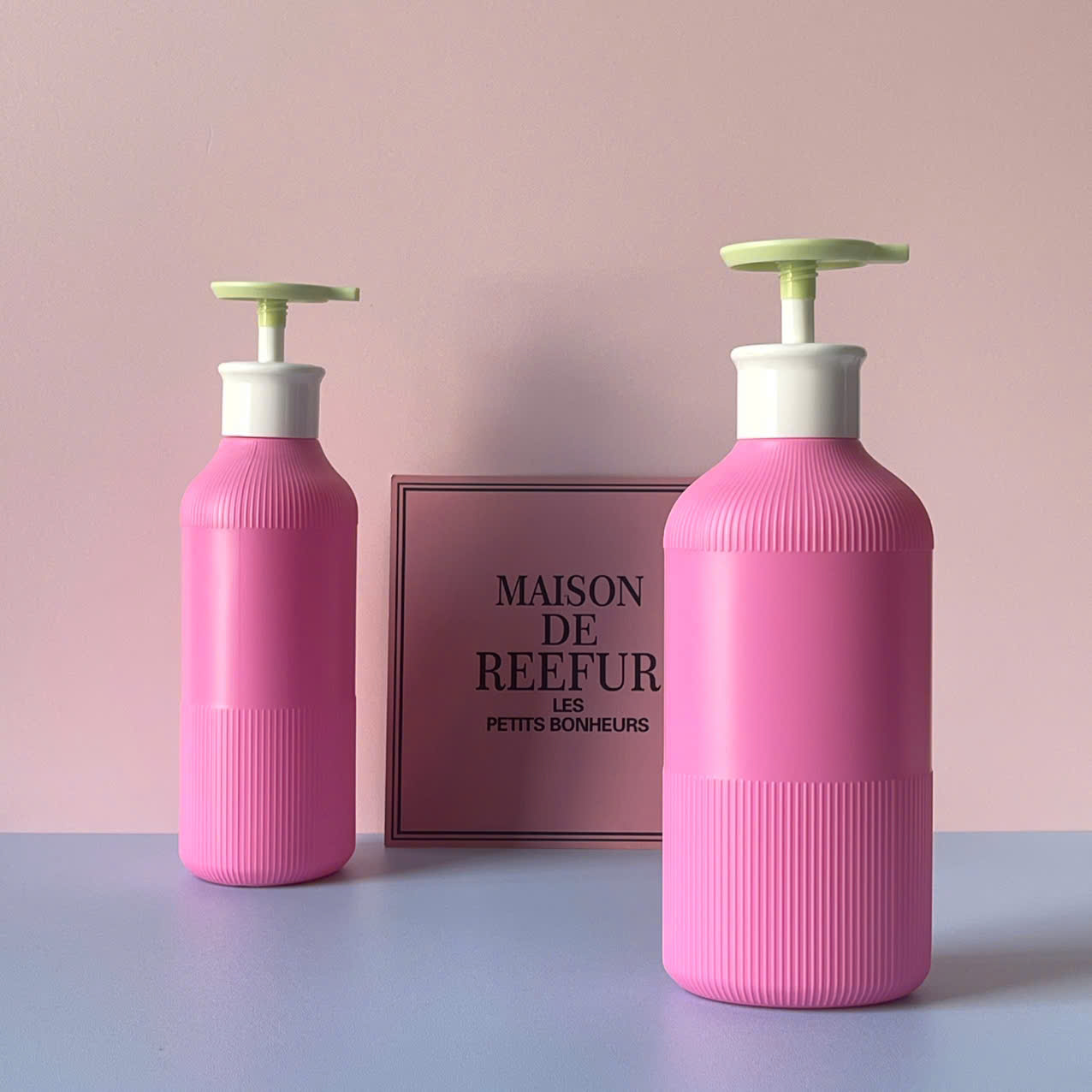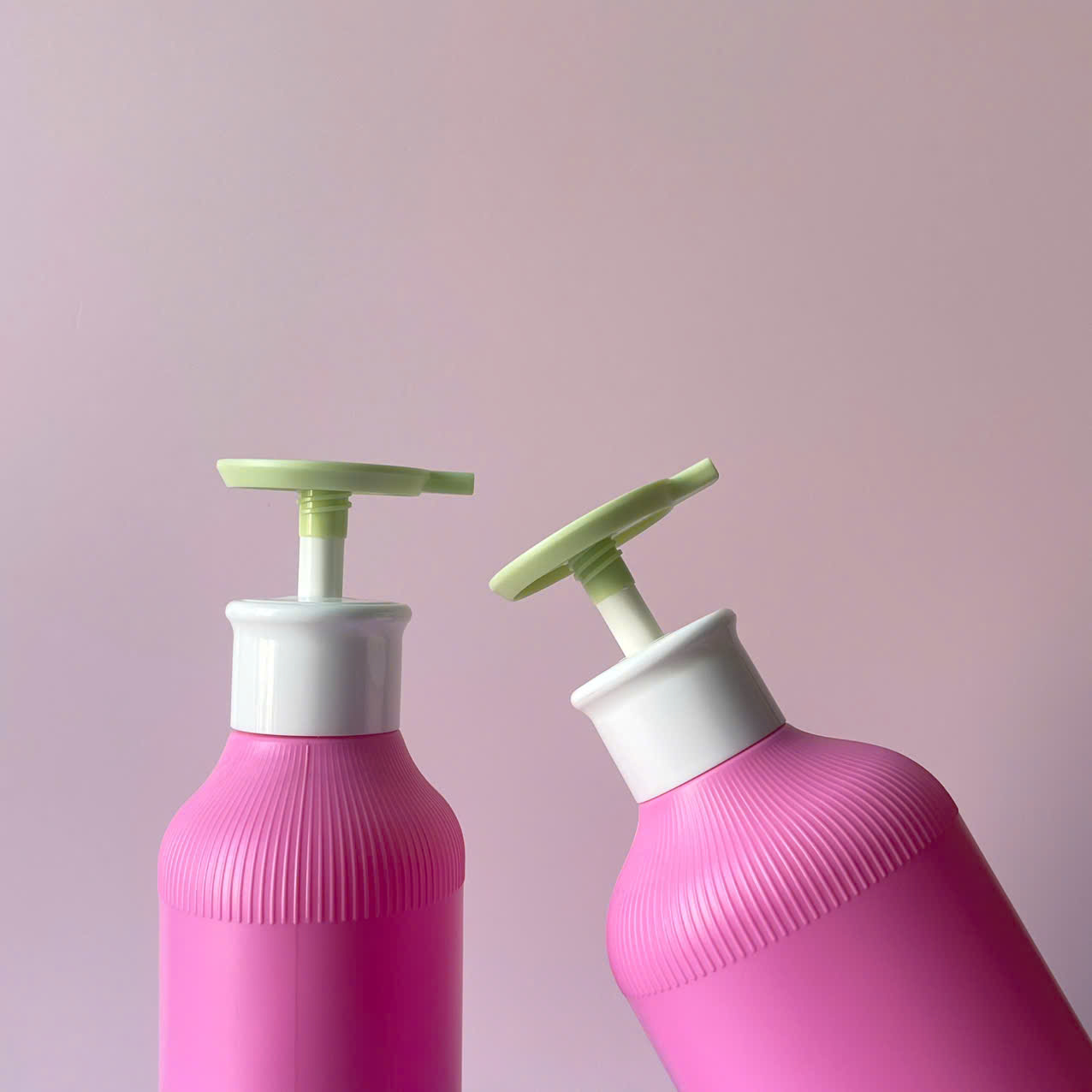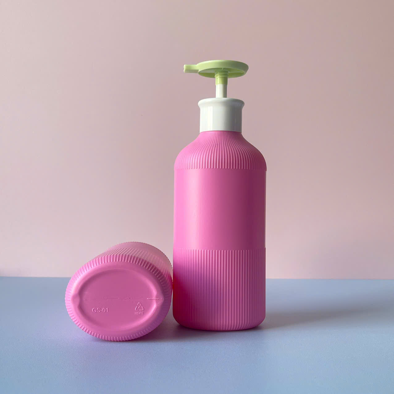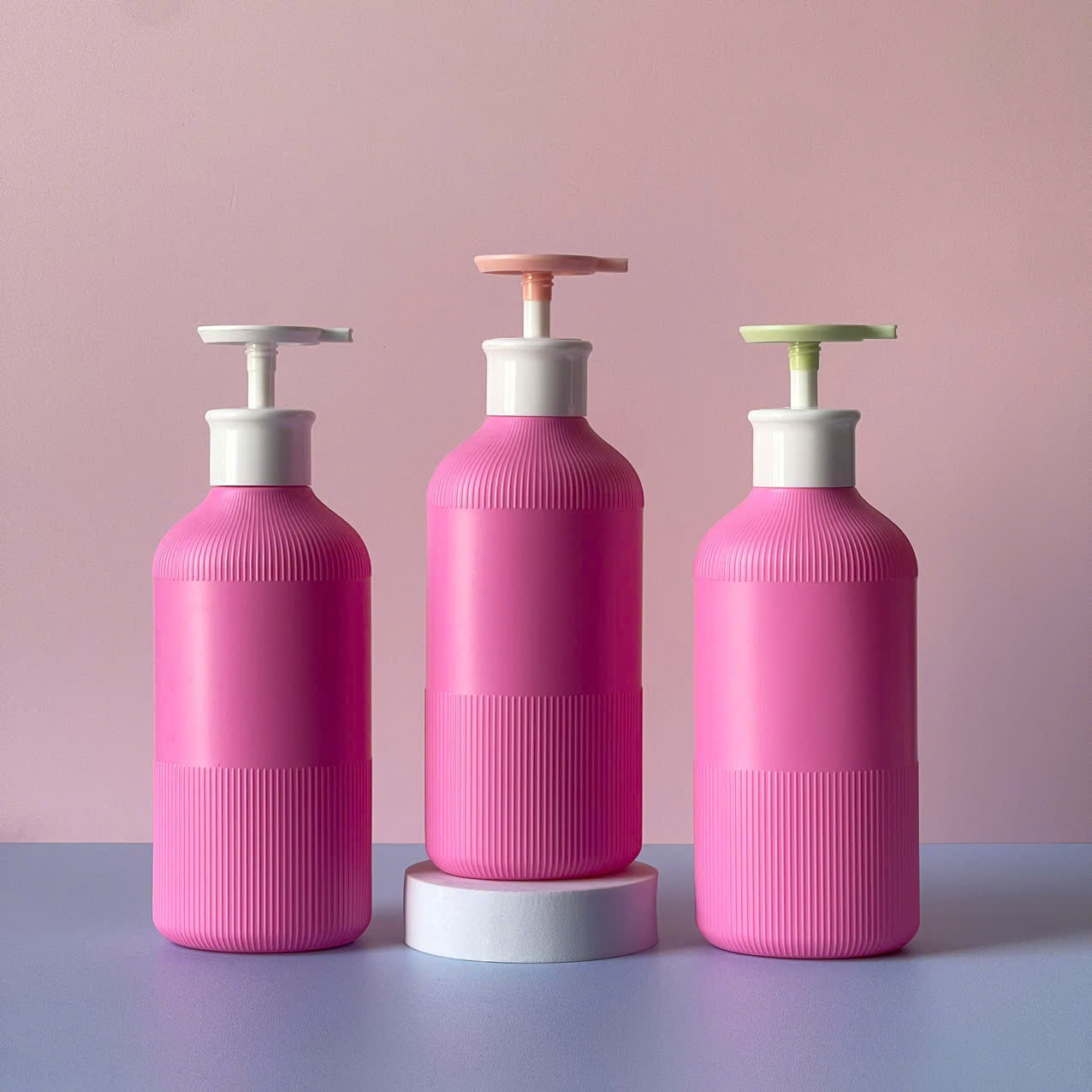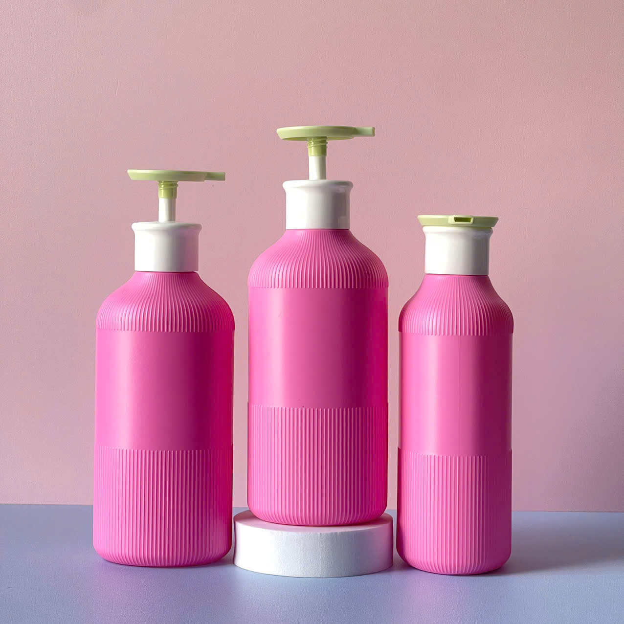 Mẫu chai HDPE 500ml hồng đậm sọc với vòi nhấn dẹp xanh là giải pháp lý tưởng cho các sản phẩm hóa mỹ phẩm và chăm sóc cơ thể. Thiết kế sọc vừa tăng tính thẩm mỹ vừa tạo cảm giác chắc chắn khi cầm nắm.
